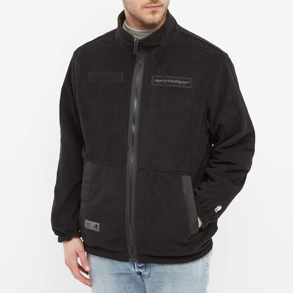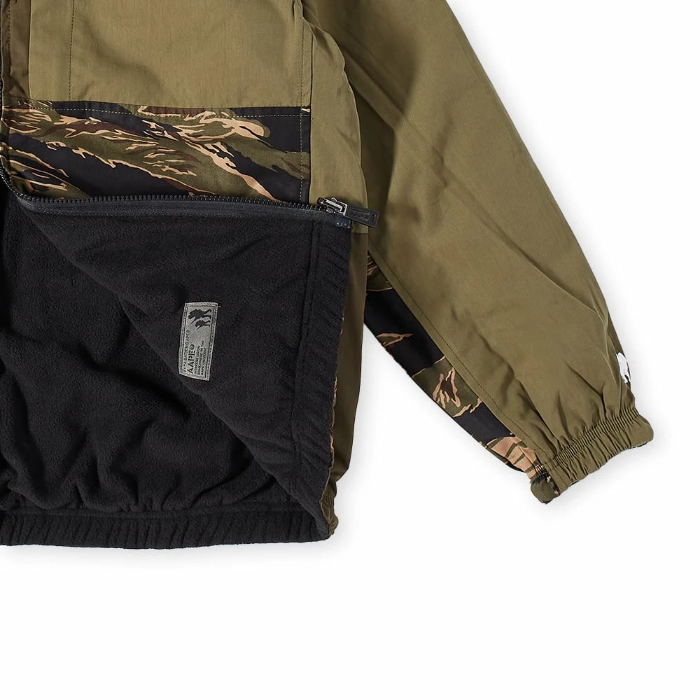 Be ready for whatever weather comes your way with this khaki coloured jacket from AAPE by A Bathing Ape. Reversible, one side is crafted from polyester and decorated with signature camo panels, while the other boasts a cosy Sherpa fleece to keep you warm and cosy during colder days. It’s branded, too, on both sides, with the label’s signature logo and Ape head motif.