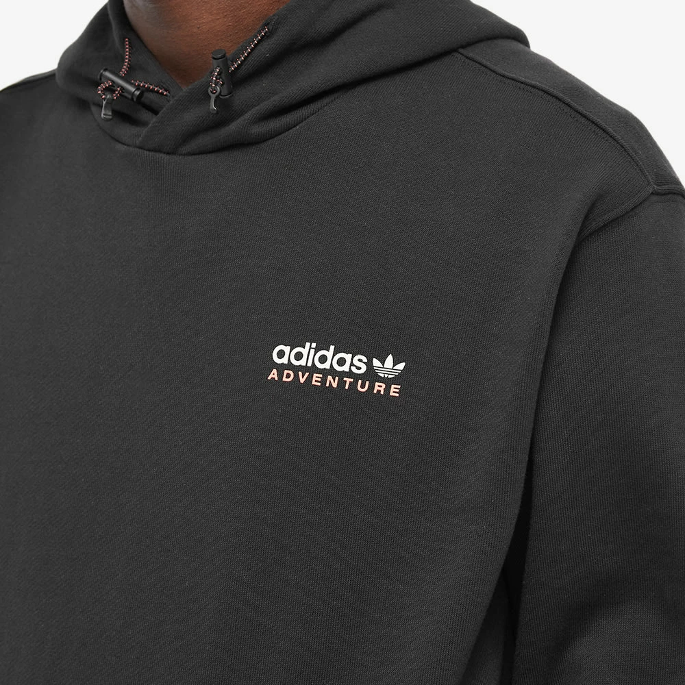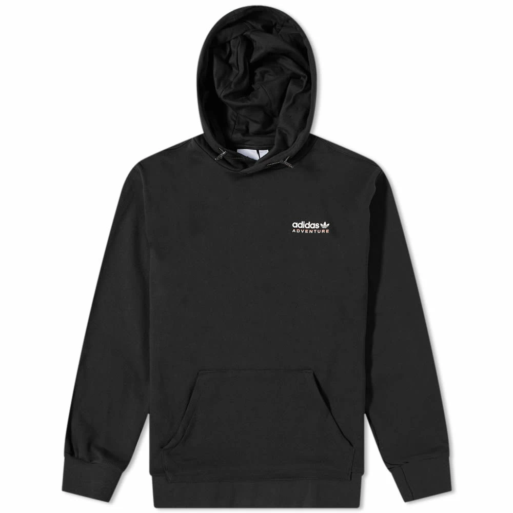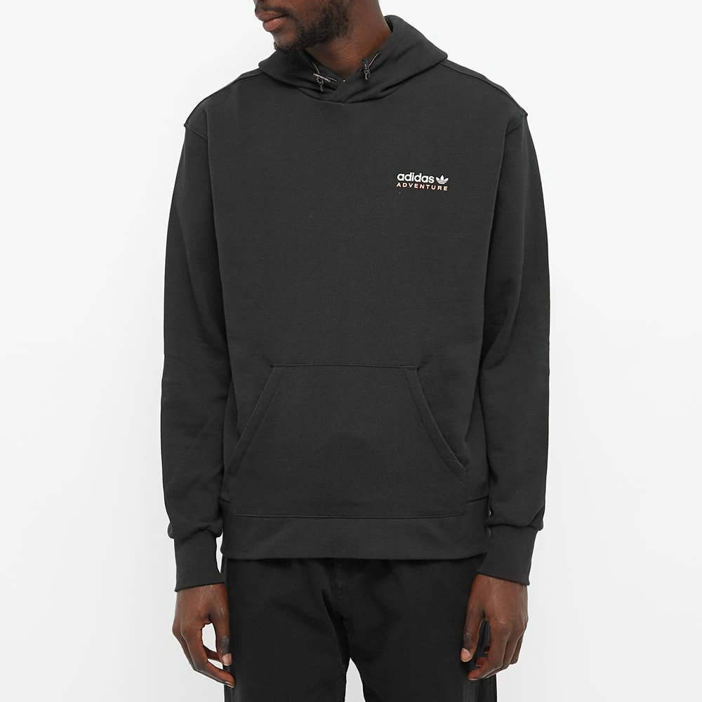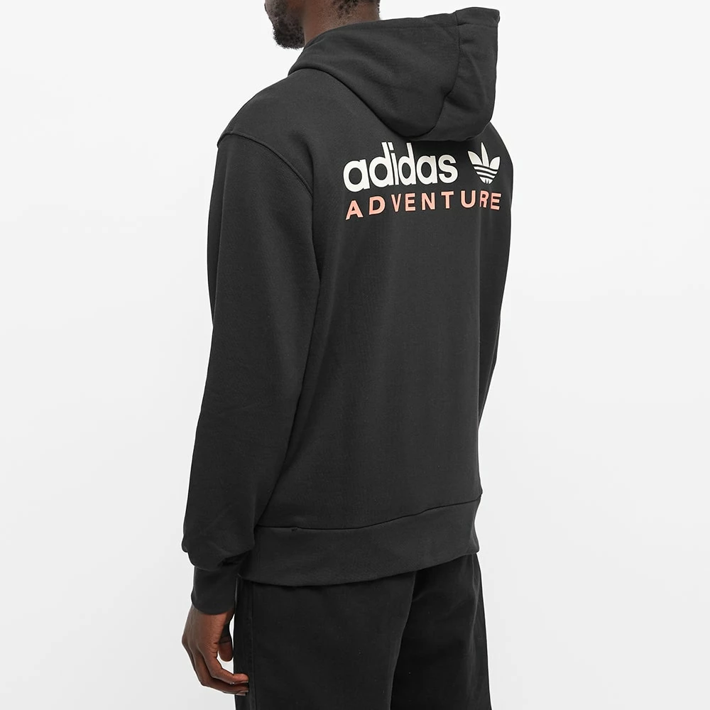Add comfort and ease to your everyday style with this classic black adidas hoody. Capturing the brands sports-meets-casual aesthetic, it makes for the perfect throw-on for all your outdoor adventures. Made from french terry cotton, it’s soft and breathable and comes equipped with a drawcord hood, snug rib trims and a practical kangaroo pouch pocket. You’ll also find the label’s signature branding with ‘adventure’ printed at the chest, and enlarged across the back, too.