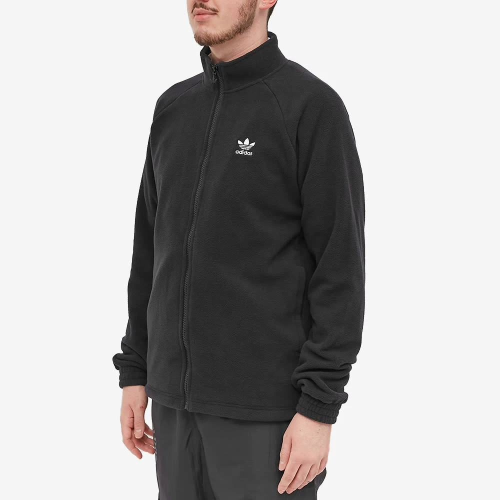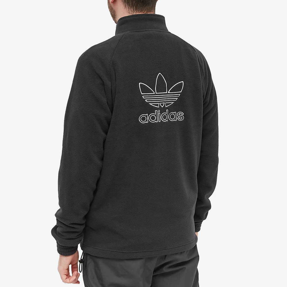 Focusing on sustainability for AW22, this black adidas trefoil full zip jacket is made with recycled materials. Crafted from soft teddy fleece, it provides comfort, warmth and style. Finished with a small embroidered trefoil logo on the front with the same graphic enlarged on the back.