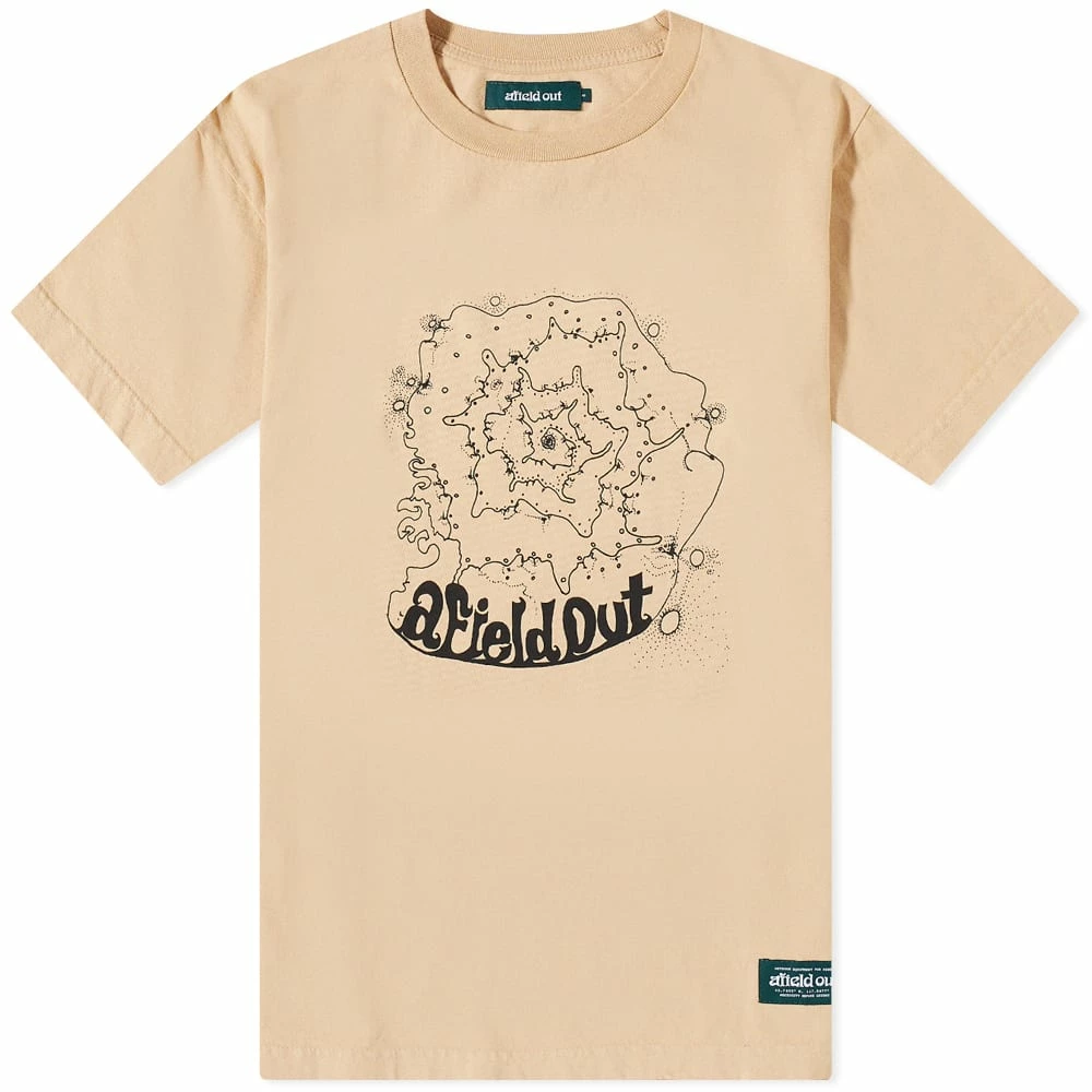 A brand that is inspired by the restorative solitude and peace of the outdoors, Afield Out’s SS22 collection features prints based around the theme of nature. This natural tee features a psychedelic print that borders on dream-like.