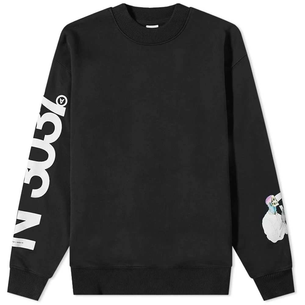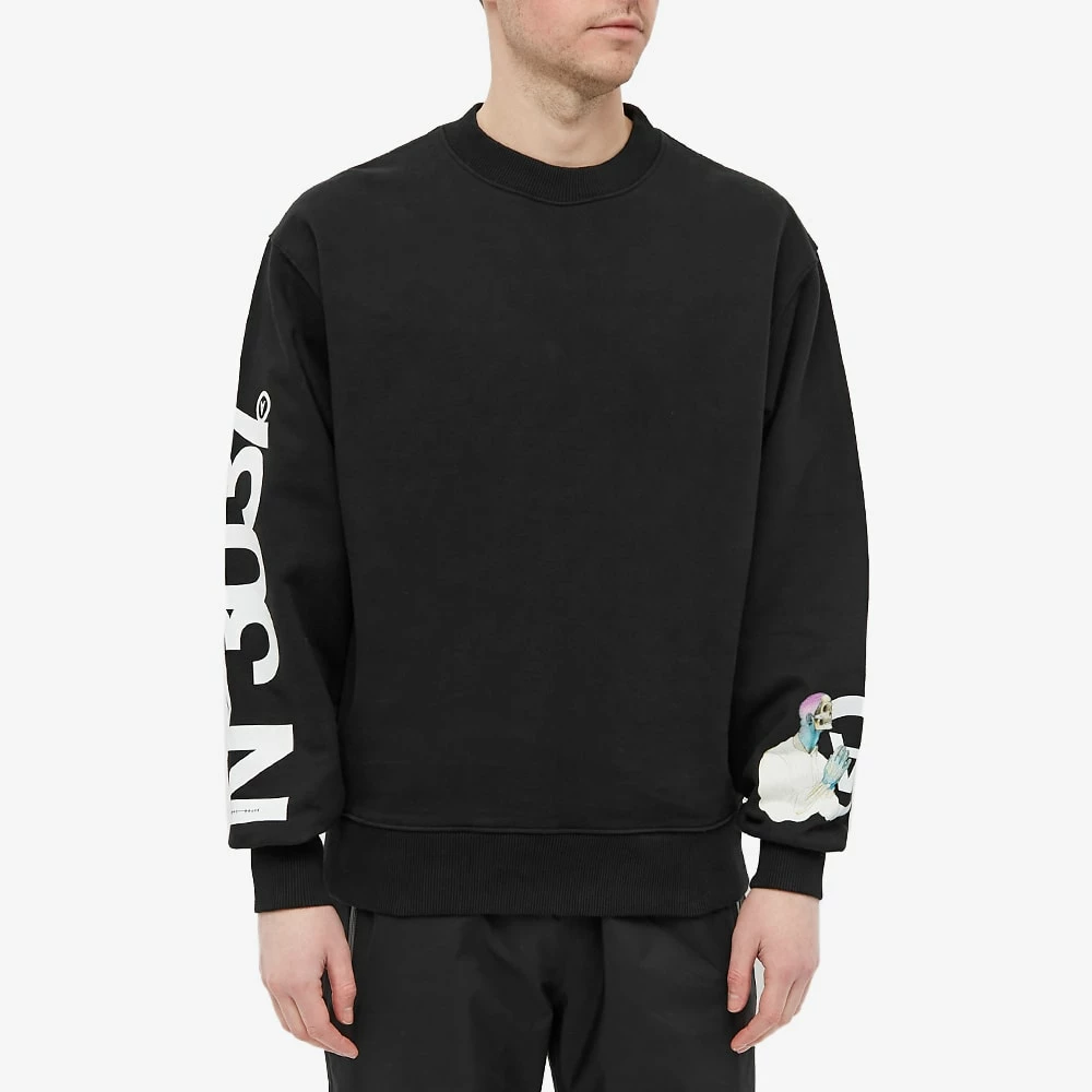 Aitor Throup’s TheDSA uses this classic black crewsweat as a blank canvas to showcase his imaginative sketches. Crafted from organic cotton, it features a praying skull figure at the sleeve with No.3037 coding at the other, which is unique to that sketch.