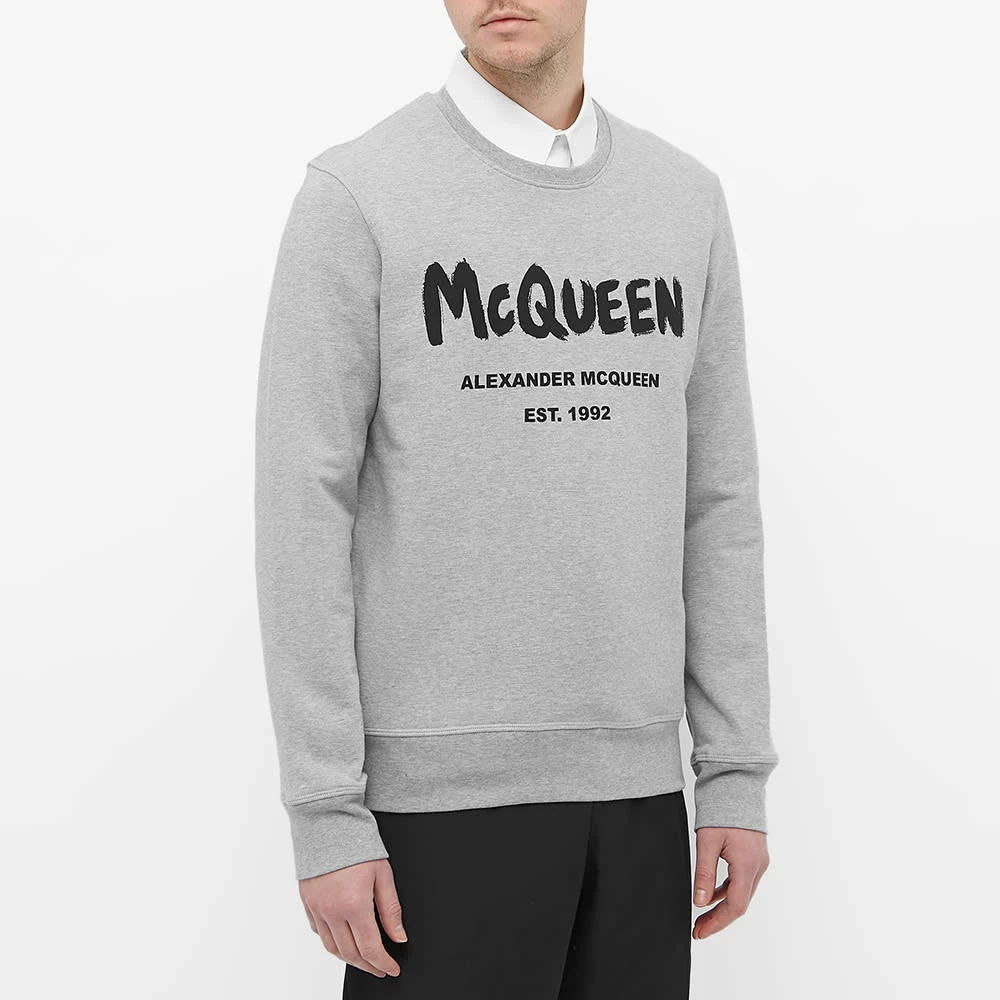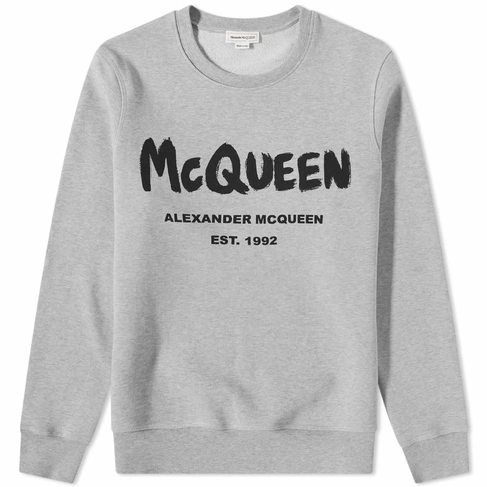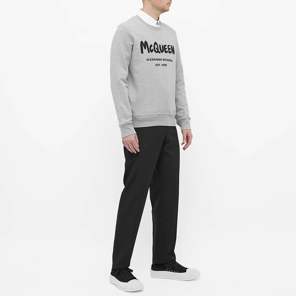 Elevate your casualwear with this grey crew sweat from Alexander McQueen. Crafted from a stretchy cotton, it’s styled with a comfy crew neck and ribbed trims. It’s detailed with black graffiti-style branding for the label’s signature bold touch, then also printed with the date the iconic brand was established – 1992 – written below.