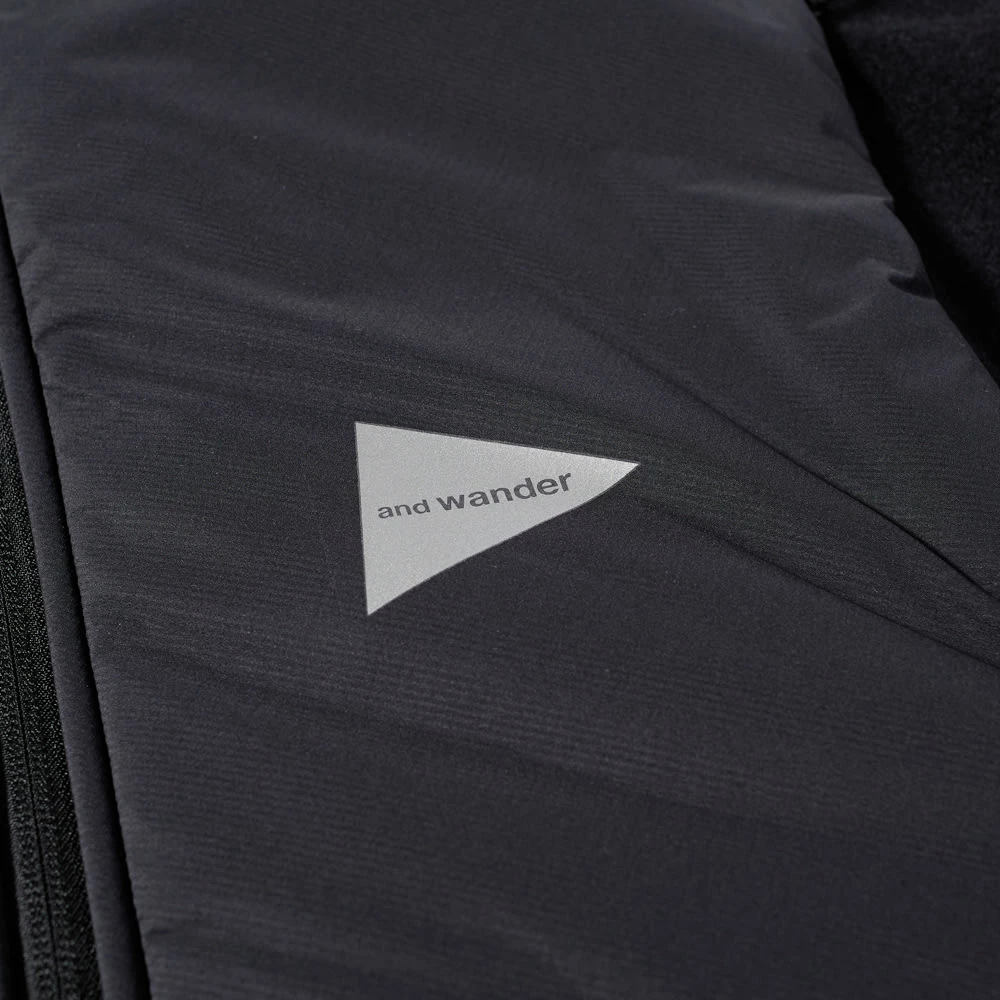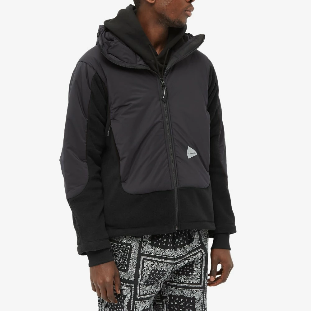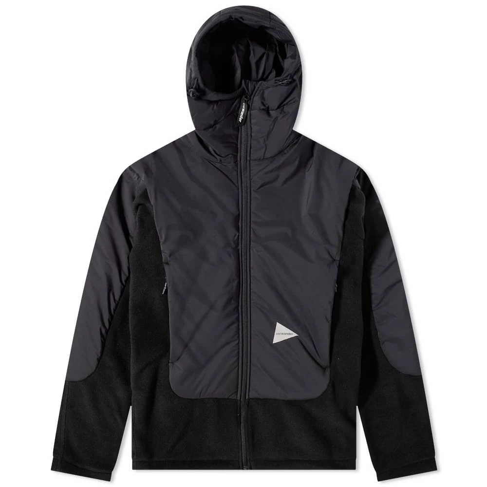 and wander takes you seamlessly from the mountains to the city with this black jacket. Made in Japan, it combines Polartec® fleece and PrimaLoft® fill, promising optimum warmth while you’re exploring outdoors. It also features durable nylon panels at the chest and a drawstring hood to keep you protected in sudden showers. Finally, it’s signed off with the label’s signature triangle branding on the front.