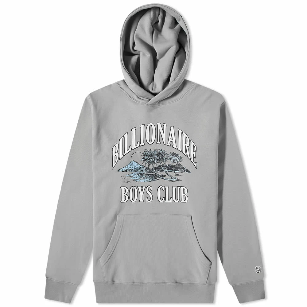 Billionaire Boys Club takes you to paradise with this grey hoody. Made from cotton loopback jersey, it features a fixed hood with an island graphic at the chest surrounded by bold branding.
