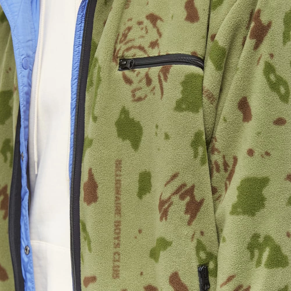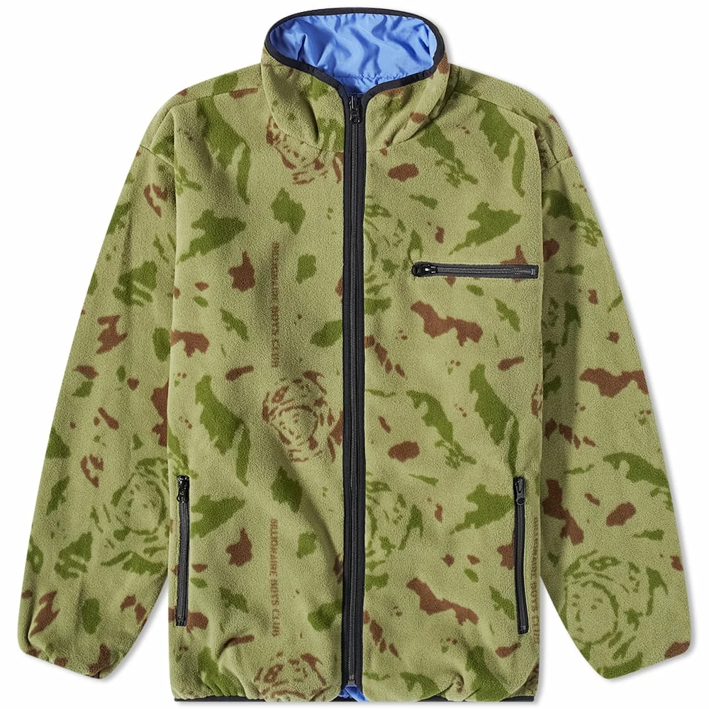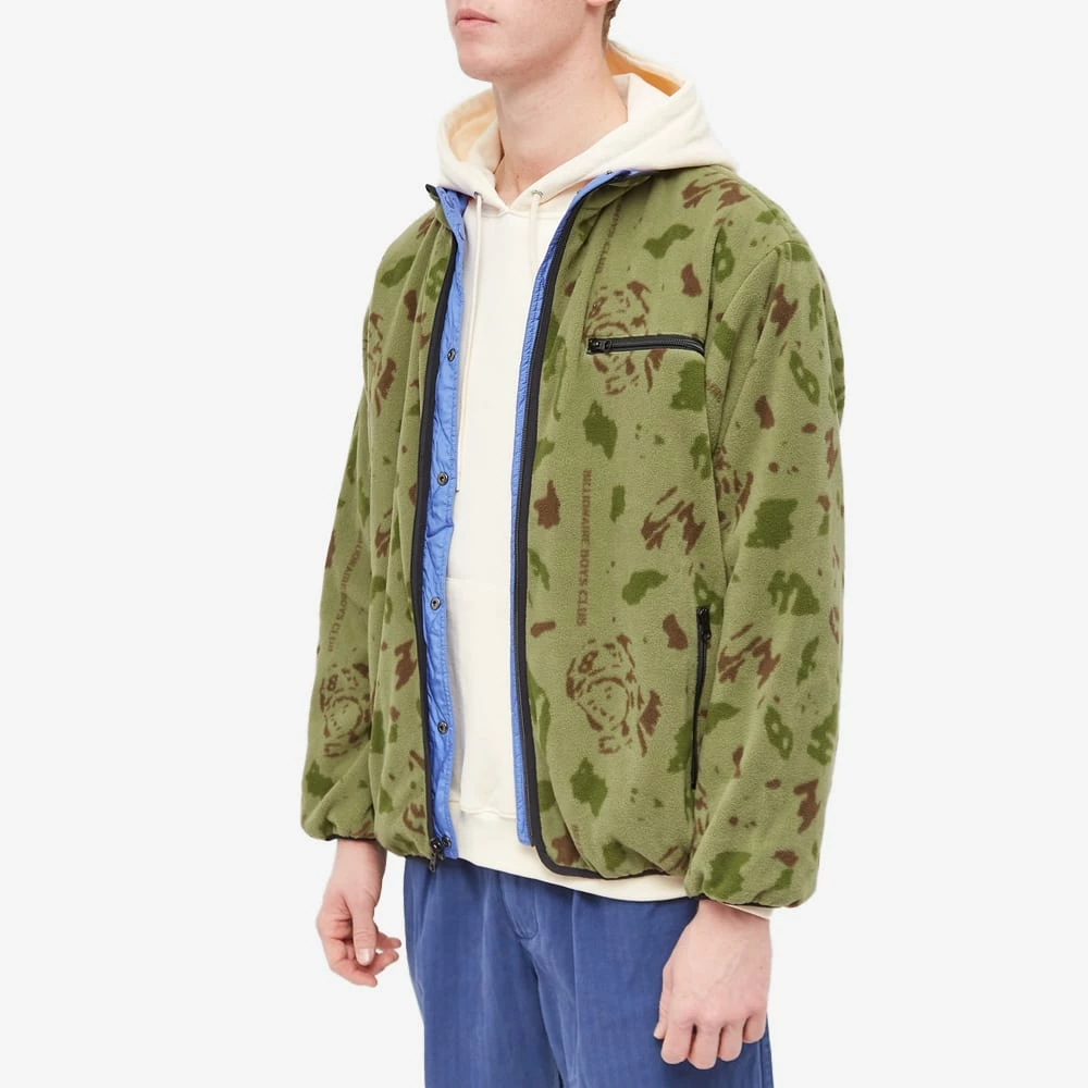 Billionaire Boys Club’s space-inspired style is clear with this reversible fleece jacket. Designed with a camo astro man printed pattern on one side and a plain purple design on the other.