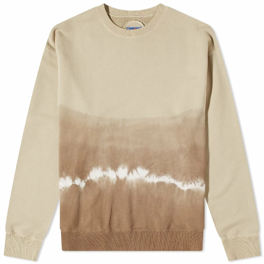 Blue Blue Japan’s dedication to traditional dye techniques continues with this crew sweat – where the practice results in a design that floods from light to dark beige. This gradation is achieved with a hand-dyed method for a distinctive finish.