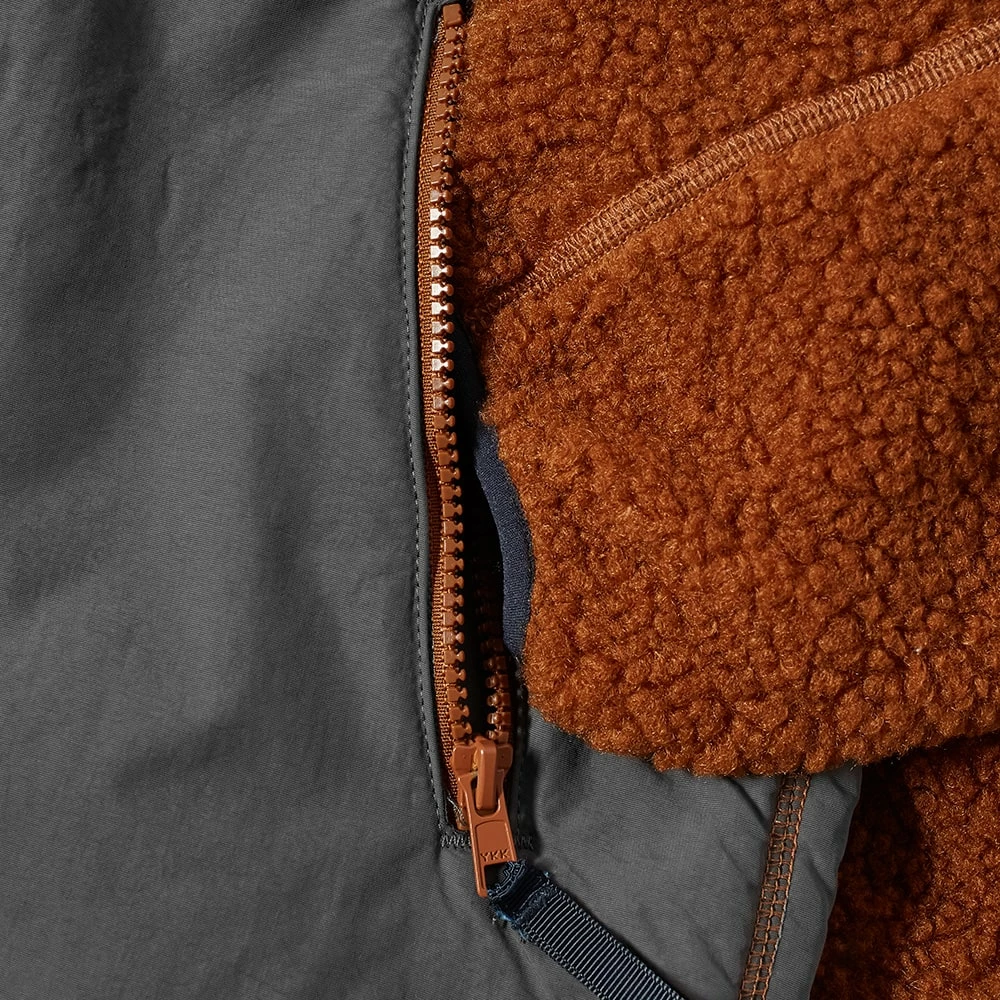 Outerwear plays an integral part in the design language of Brain Dead, but the approach is always out-there. Take this jacket — it’s styled much like old-school hiking pieces with its fleece construction, funnel neck and drawstring trims, only it’s inlaid with nylon panels to give the mismatched look.