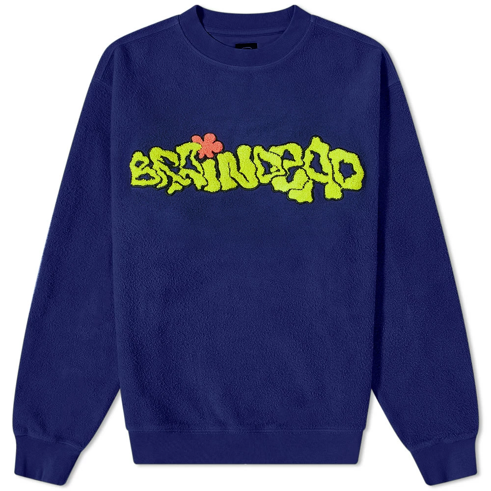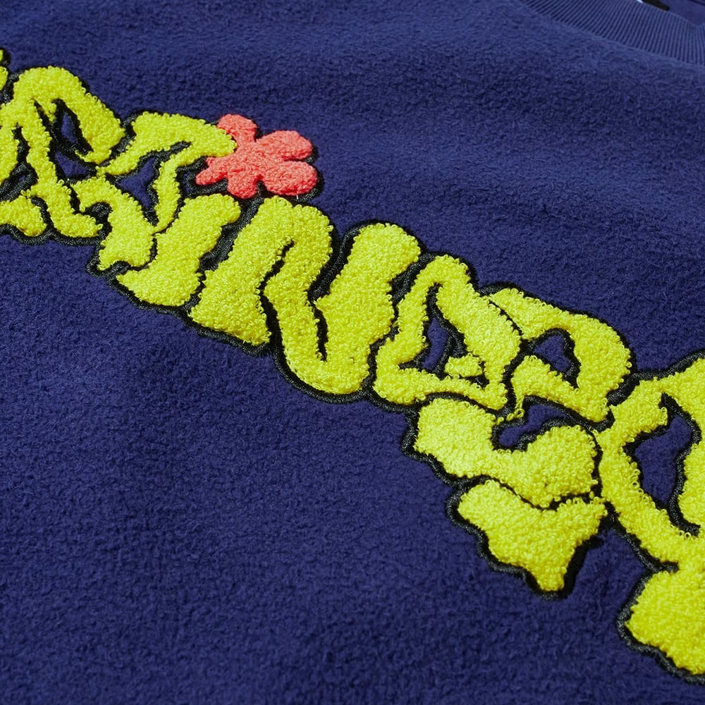 Brain Dead doesn’t follow the crowd when it comes to design, it takes a much bolder approach instead. This crew, for instance, is reversed so its fleecy texture is on the outside, then detailed with psychedelic-looking branding in yellow and pink.