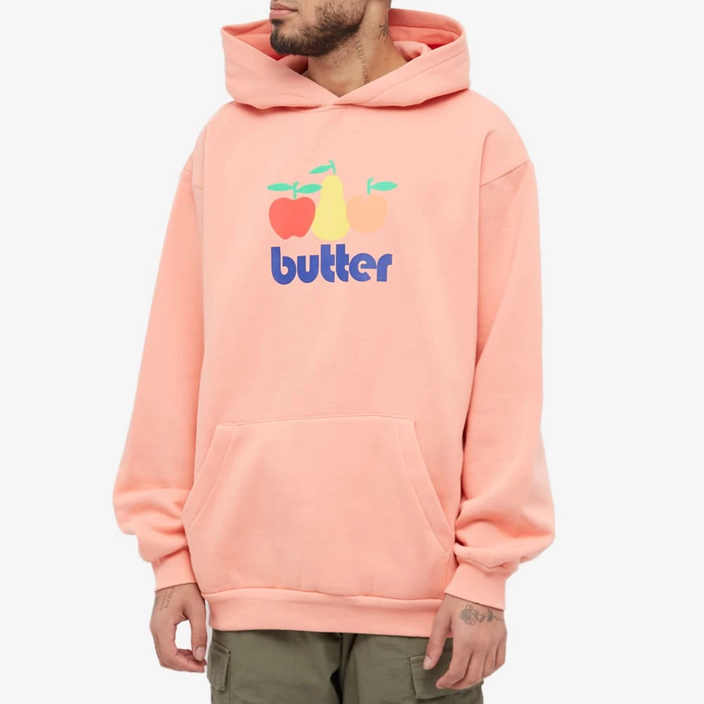 Skate brand Butter Goods offers up a different kind of five-a-day with this peachy popover hoody from its latest collection – a range showcasing the labels love for playful graphics, ‘90s nostalgia and street culture. It’s made from heavy-weight cotton and features fruitful artwork printed on the chest alongside the brands classic Butter logo.