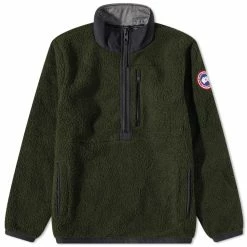 Designed to combat harsh Canadian winters, Canada Goose is constantly reaching new altitudes with its range of clothing. Made with recycled materials this green high-pile fleece, the Renfrew pullover features a contrasting collar, zip and arm detailing. Complete with a signature logo patch on the sleeve.