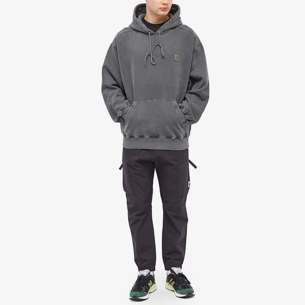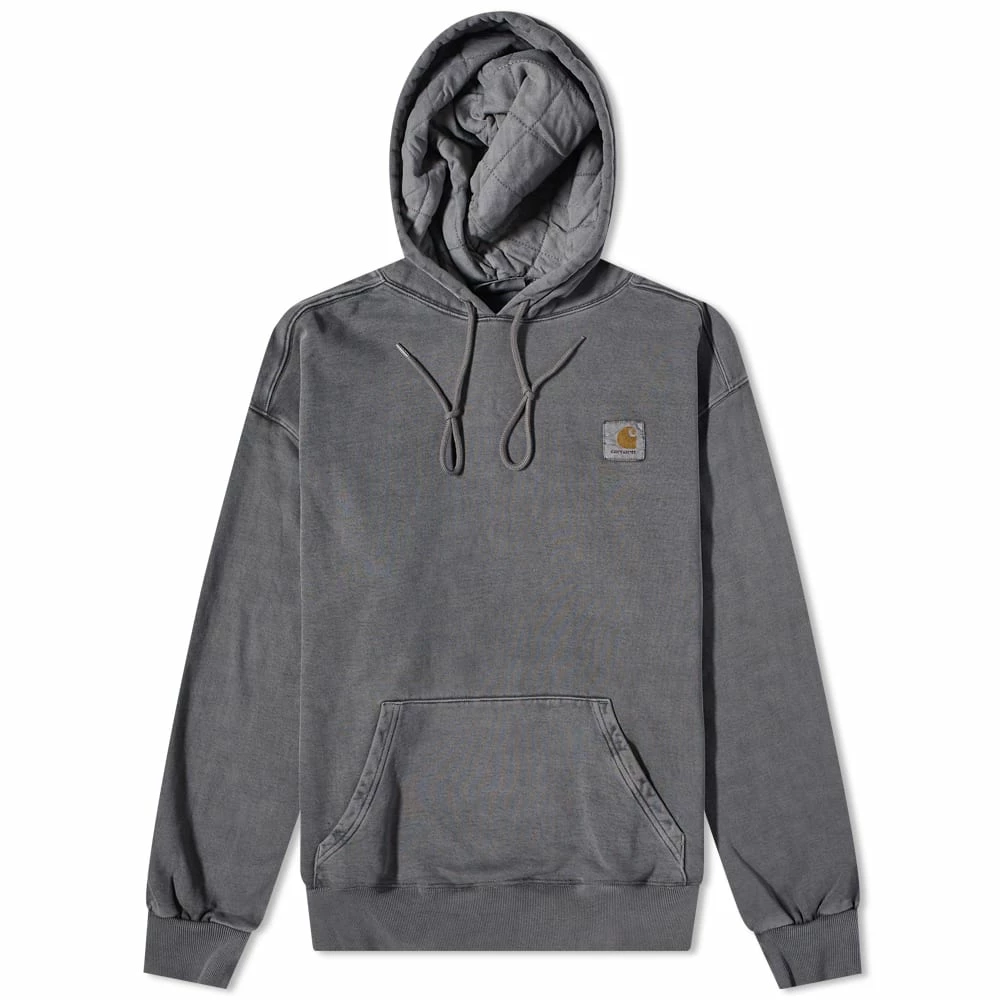 Loved by fans because of its proud utilitarian aesthetic Carhartt WIP became popular with graffiti artists in the 1990’s. Cut to a boxy fit, this grey hoodie is garment-dyed with the woven brand patch undergoing the same treatment.