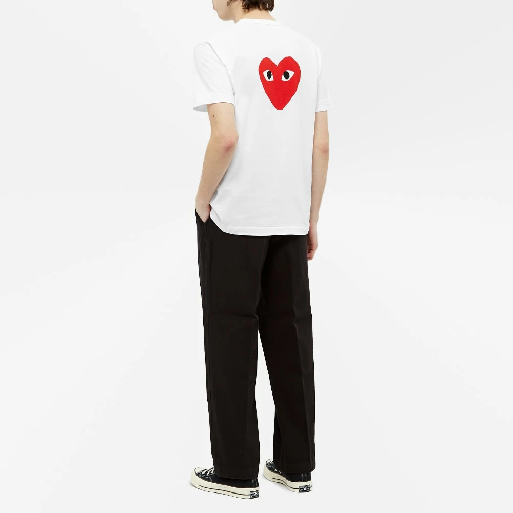 You’re certain to feel the love when wearing this white Comme des Garçons PLAY cotton tee. It features Filip Pagowski’s bug-eyed motif at the front and back, and is expertly crafted in Japan from pure cotton jersey.
