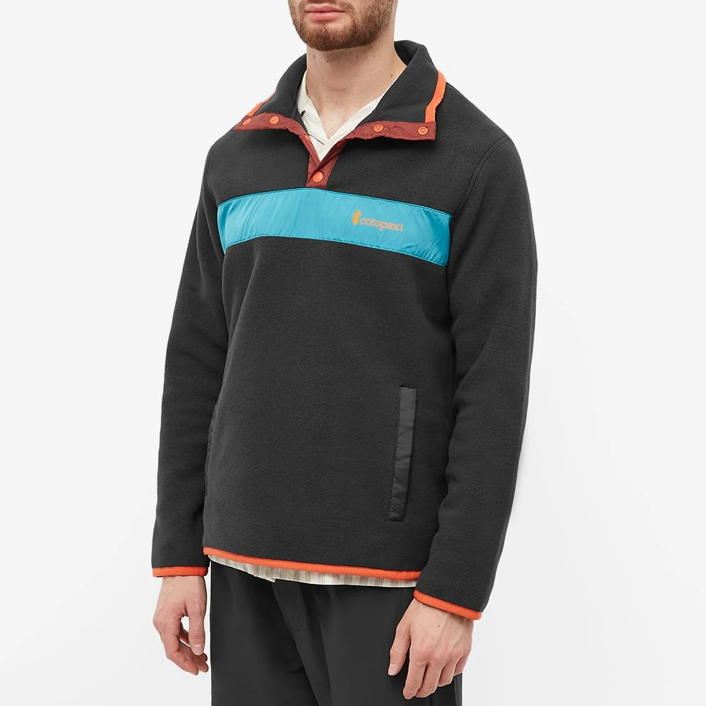 Salt Lake City based adventuring brand Cotopaxi infuses it’s sustainable outlook with retro styling for this Teca pullover. Crafted from recycled polyester fleece, the cosy sweater features accents of orange and blue across the chest and placket which are made from repurposed taffeta and is finished with two handy hand-warming pockets.