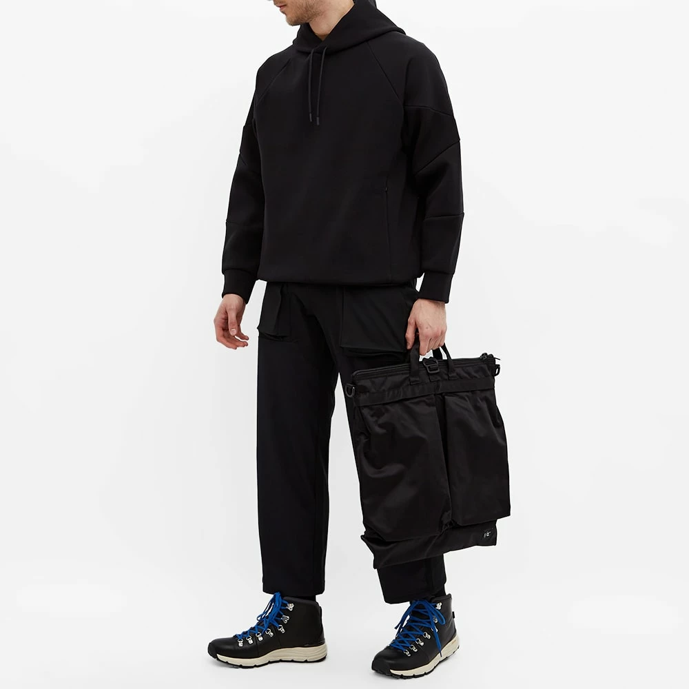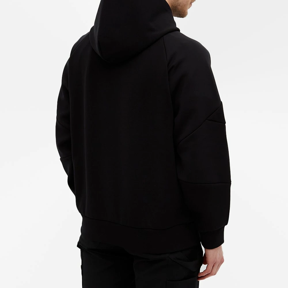 Made from water repellent polyester, F/CE.’s hoody is the ultimate layer for outdoor activities during the wetter seasons. Its black build is cut to an oversized fit and features a unique panelled design with ribbed trims for added warmth.