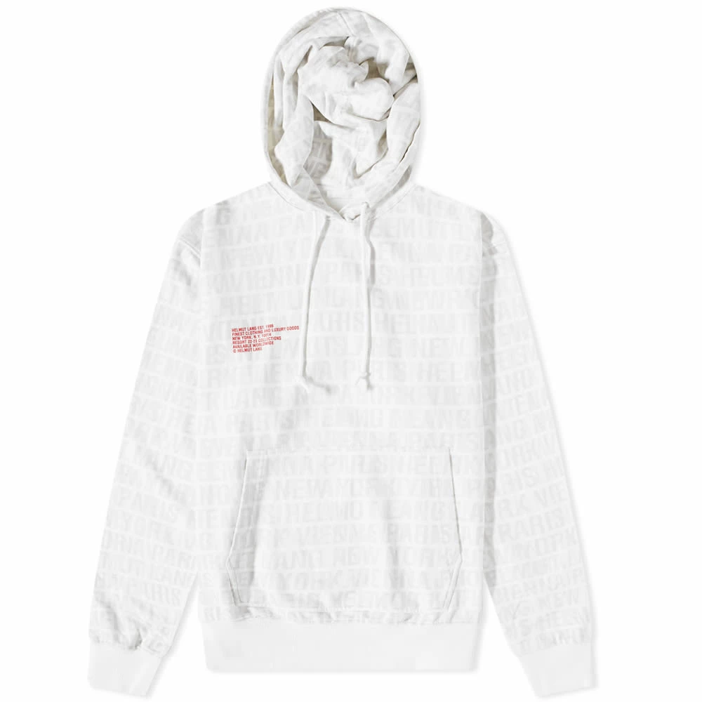 Launching his eponymous line in 1985, Austrian designer Helmut Lang has become known for severe, sophisticated tailoring and modern, minimalist styles. Crafted from French terry cotton, this hoodie features an all over HL logo print.