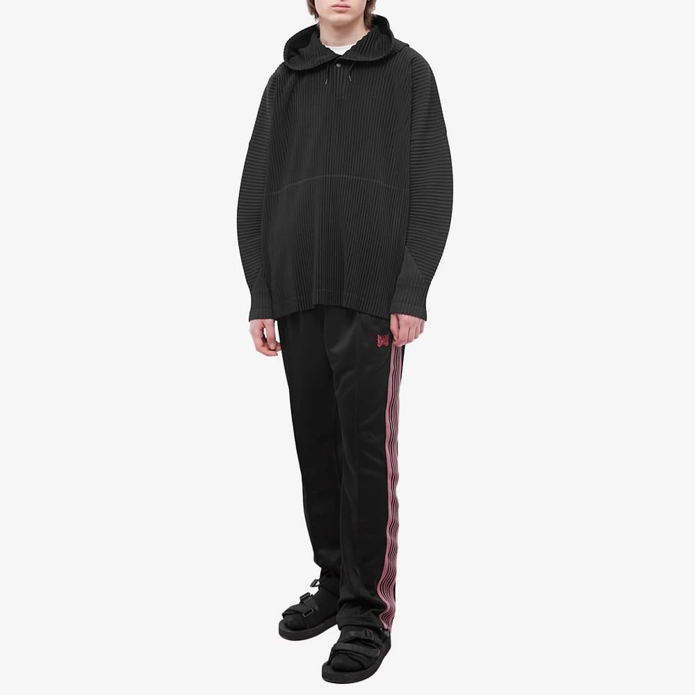 Homme Plissé Issey Miyake continues on its experimental journey, years on since Issey Miyake and the team first started researching pleating techniques. Its fabric characterises a modern mix and match wardrobe. Sleek and multi directional pleating form this hoody, creating voluminous dropped shoulders.