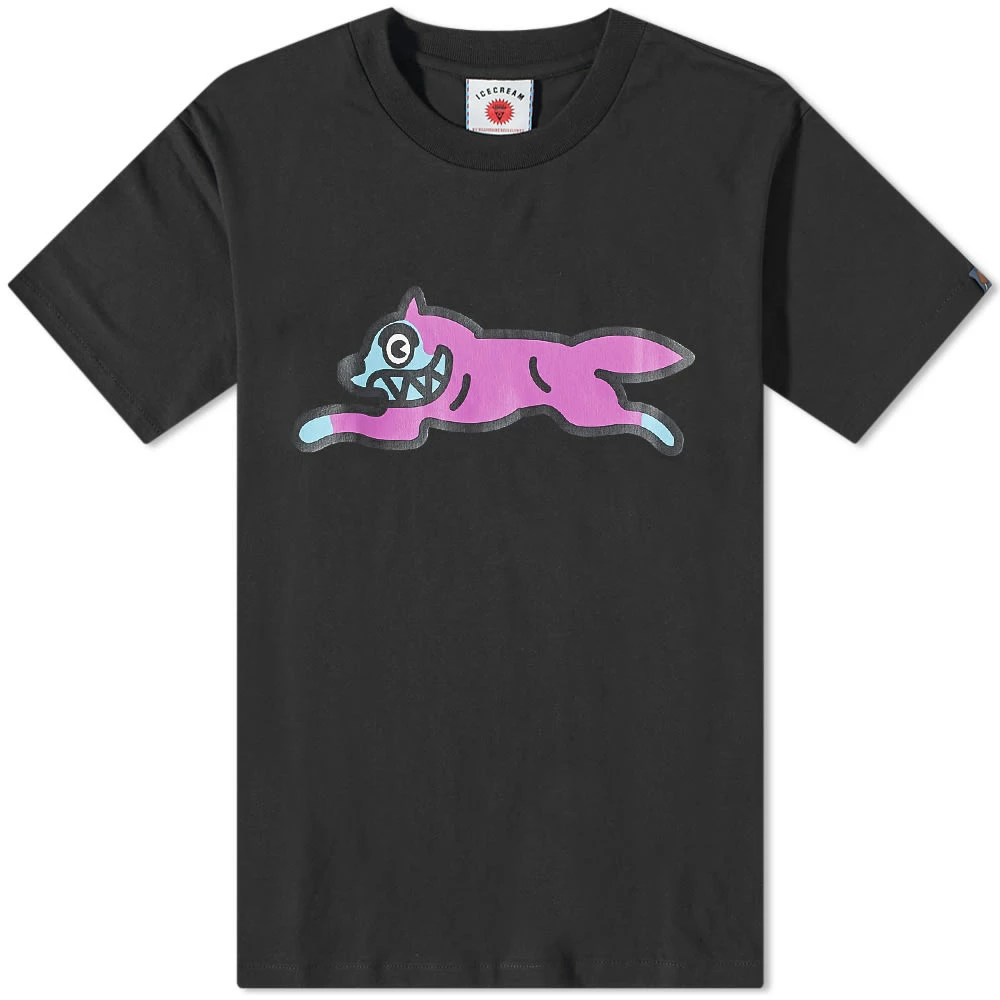 Brainchild of musician Pharell Williams, ICECREAM is coveted for its light-hearted aesthetic, drawing inspiration from skateboarding and hip-hop culture. Part of the FW22 collection, this black tee features the signature ‘Running Dog’ graphic printed on the front, created by Japanese graphic designer Shinichiro Nakamura.
