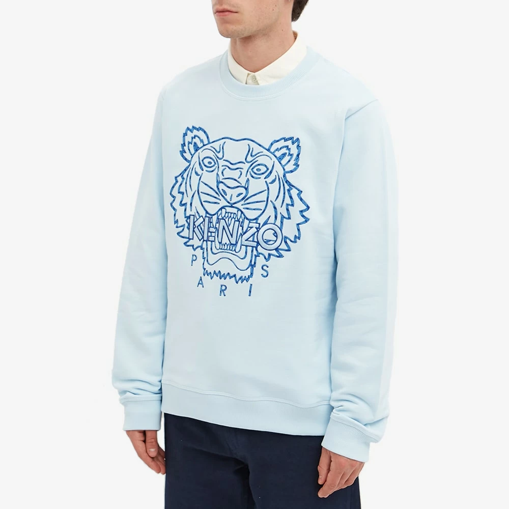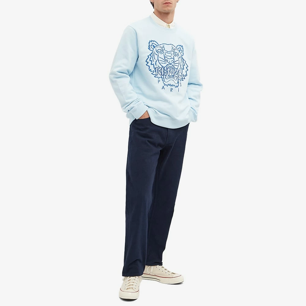 Go bold with Kenzo and this light-blue crew sweat that’s emblazoned with the brand’s iconic tiger emblem. Crafted in Portugal from super-soft cotton jersey, it arrives with relaxed, dropped shoulders and snug ribbed trims, making it ideal for elevated everyday looks.