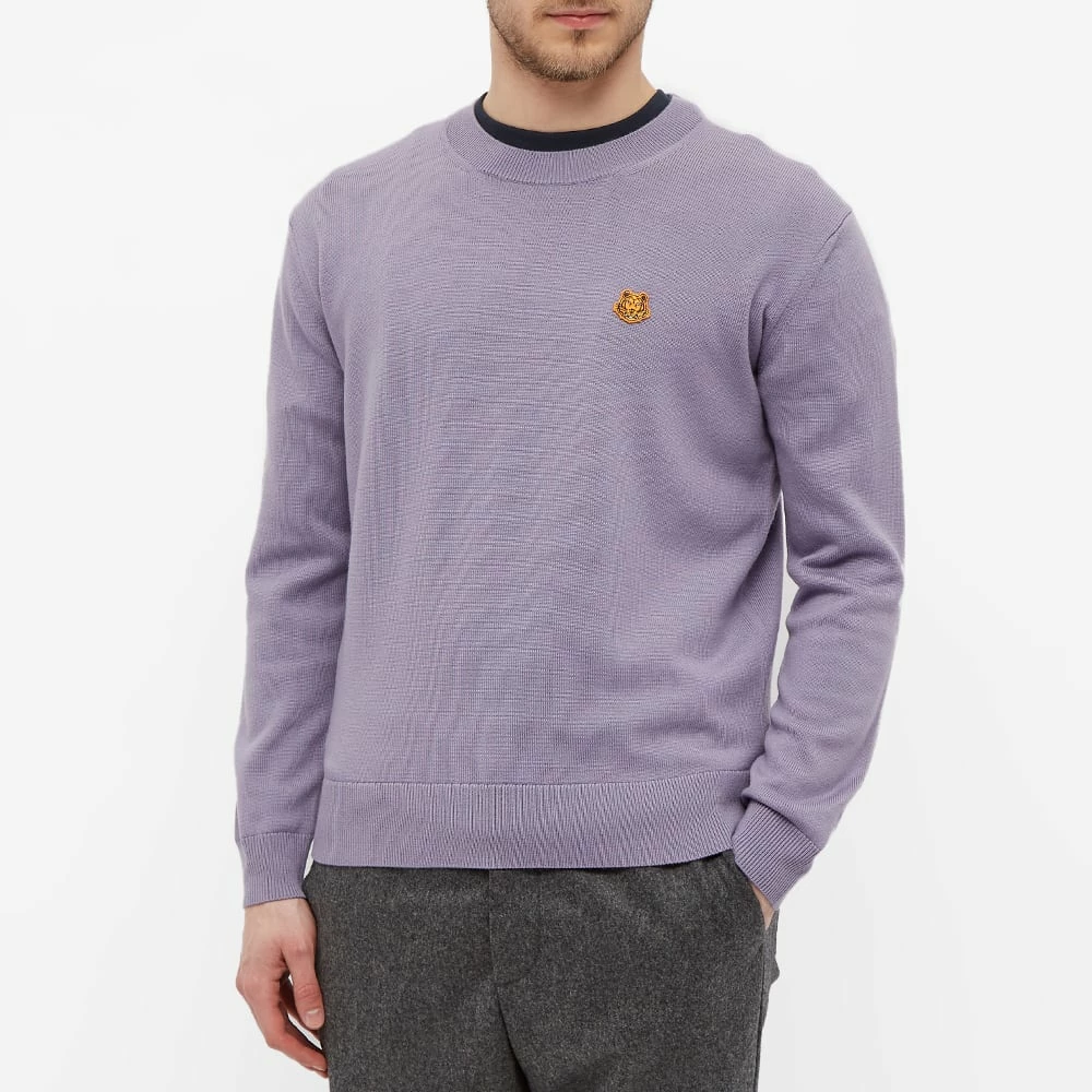 A golden tiger appliqué stands out proudly at the chest of this pull-over sweater from Kenzo. Arriving in purple, it’s made from cosy wool and framed with comfy ribbed trims.