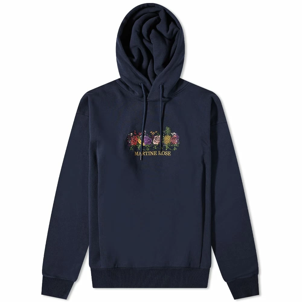 First established in 2007, Martine Rose is a British menswear label. Taking inspiration from the 90s, this fruit logo hoody is a classic style with the brand’s logo embroidered on the front. On top of the logo is an embroidered display of flowers and fruits.
