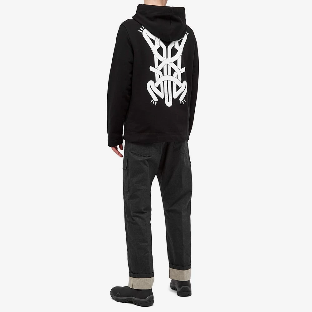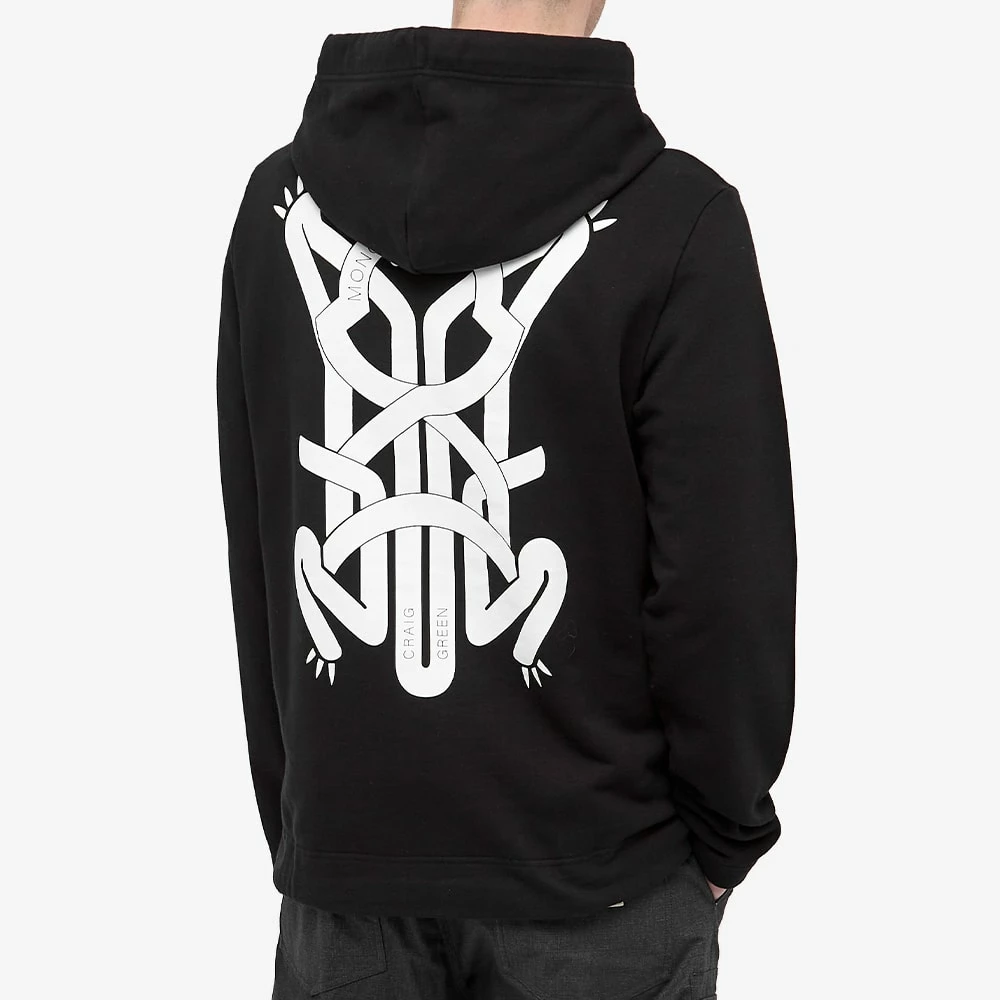 The latest Genius capsule, 5 – Moncler Craig Green, sees the British designer’s experimental approach to design brought to the fore. And this black hoody reflects that. It’s cut from French terry jersey and features oversized drawstring tassels — in keeping with Green’s penchant for exaggerated proportions — then detailed at the back with the collection’s frog graphic in bright white.