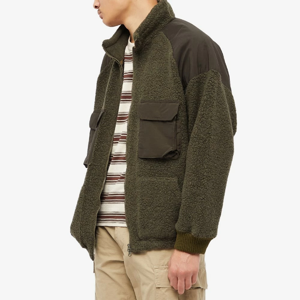 Innovation driven nanamica balance function and fashion in hybrid garments that you could call elevated-adventurewear. With a heritage in tech fabrics, it creates this green jacket inspired by military liner fleeces and reconstructs it with performance elements of outerwear: a brushed pile of thermal and soft wool, durable nylon panels and KODENSHI® mesh lining reflects back body heat to maintain natural warmth.