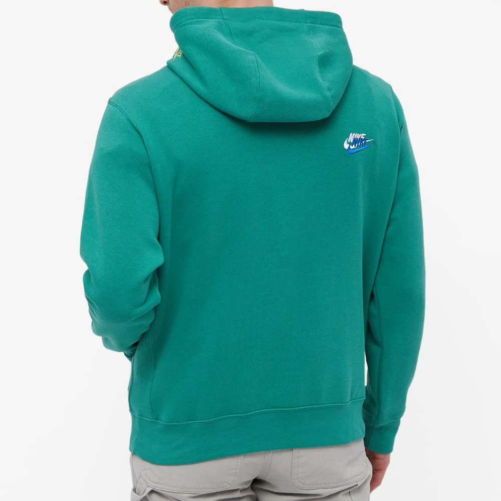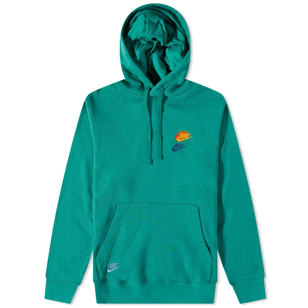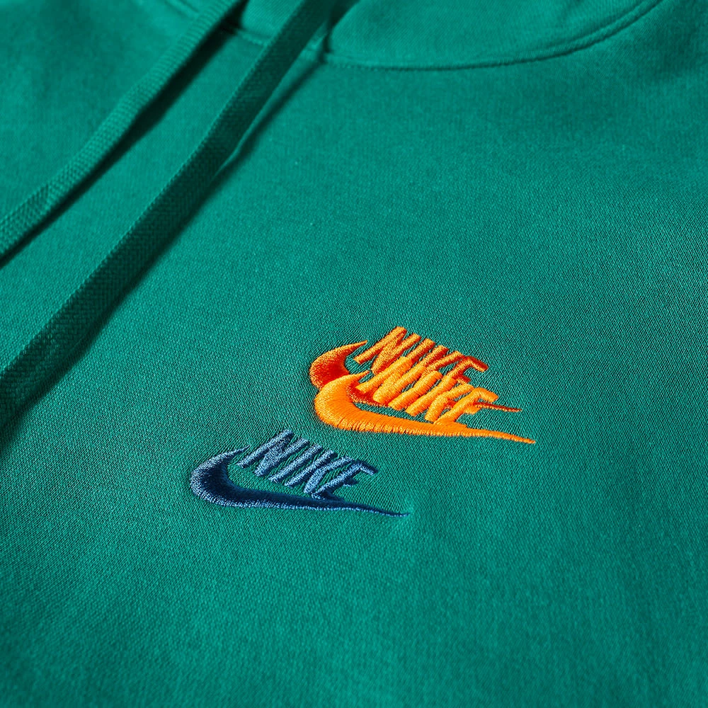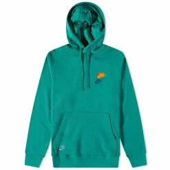 Nike covers this green hoody with its iconic swoosh for an unmistakable sporty staple. Crafted from a cotton-rich blend, it’s lined with super-soft fleece and fitted with a drawstring hood for a classic cosy style. You’ll find multiple logos embroidered on the chest – and on the pouch pocket and hood, too.