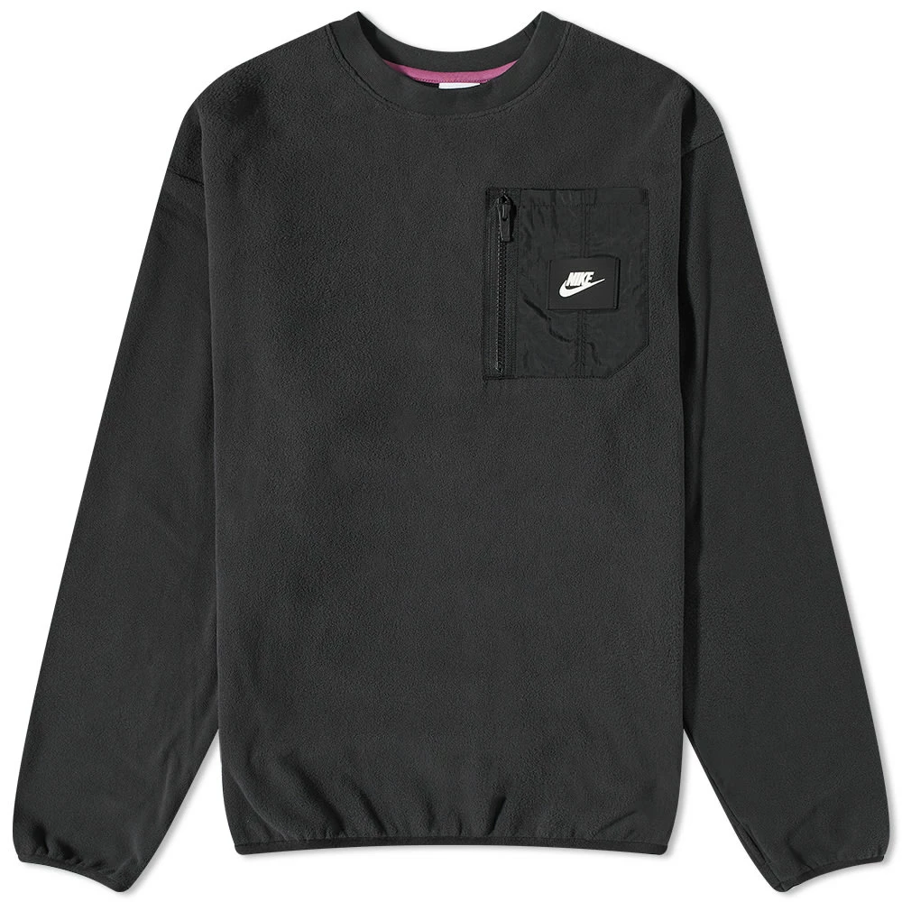 The warmth of a fleecy outer and a utility-inspired aesthetic forms the base of this black pull-over crew from Nike. Utilising the brand’s own Therma-FIT technology, it’s designed to keep you at your optimum temperature and features a cargo-style pocket at the chest – made from contrasting nylon fabric for a militant sign-off.