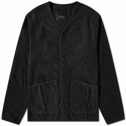 Norse Projects channels cosy vintage workwear with this black Otto jacket. Crafted from recycled polyester fleece, it has a clean-cut collarless silhouette and features two angled patch pockets at the bottom for a practical touch. It’s ideal for layering over tees in warmer weather or pairing with a more robust coat for those colder days.