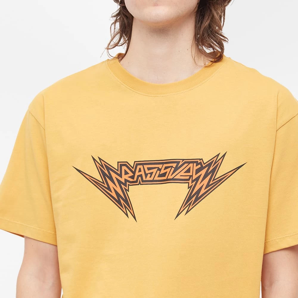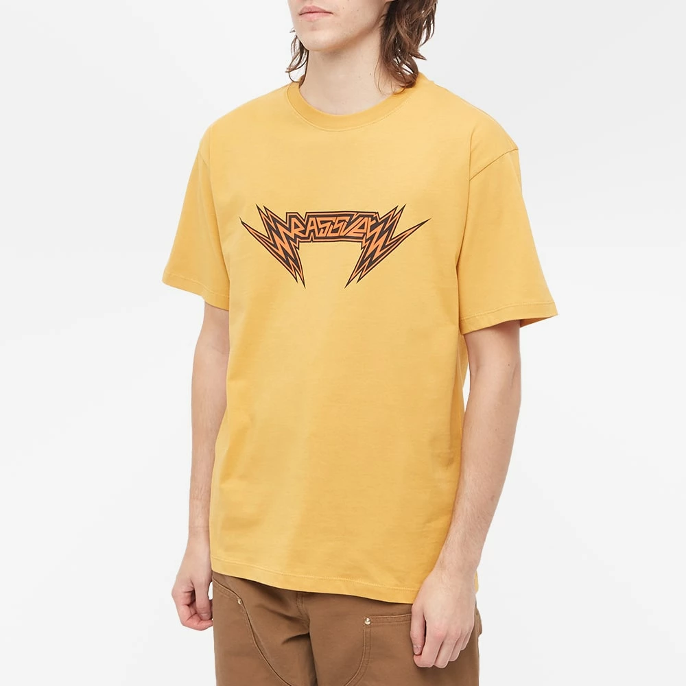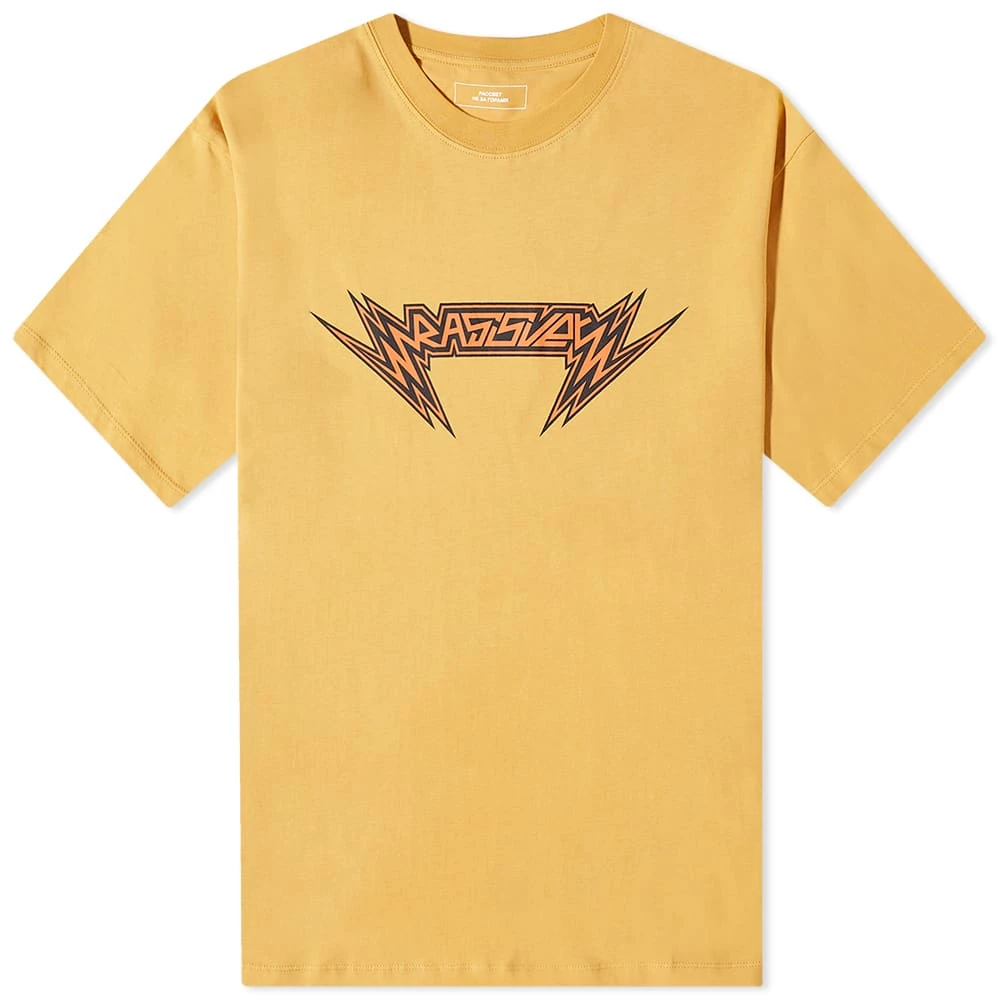 Skatewear label PACCBET creates graphic ready-to-wear pieces designed by Gosha Rubchinskiy and his pro-skater friend Tolia Titaev. Crafted from cotton, this brown tee is printed with the brand’s sparks logo.
