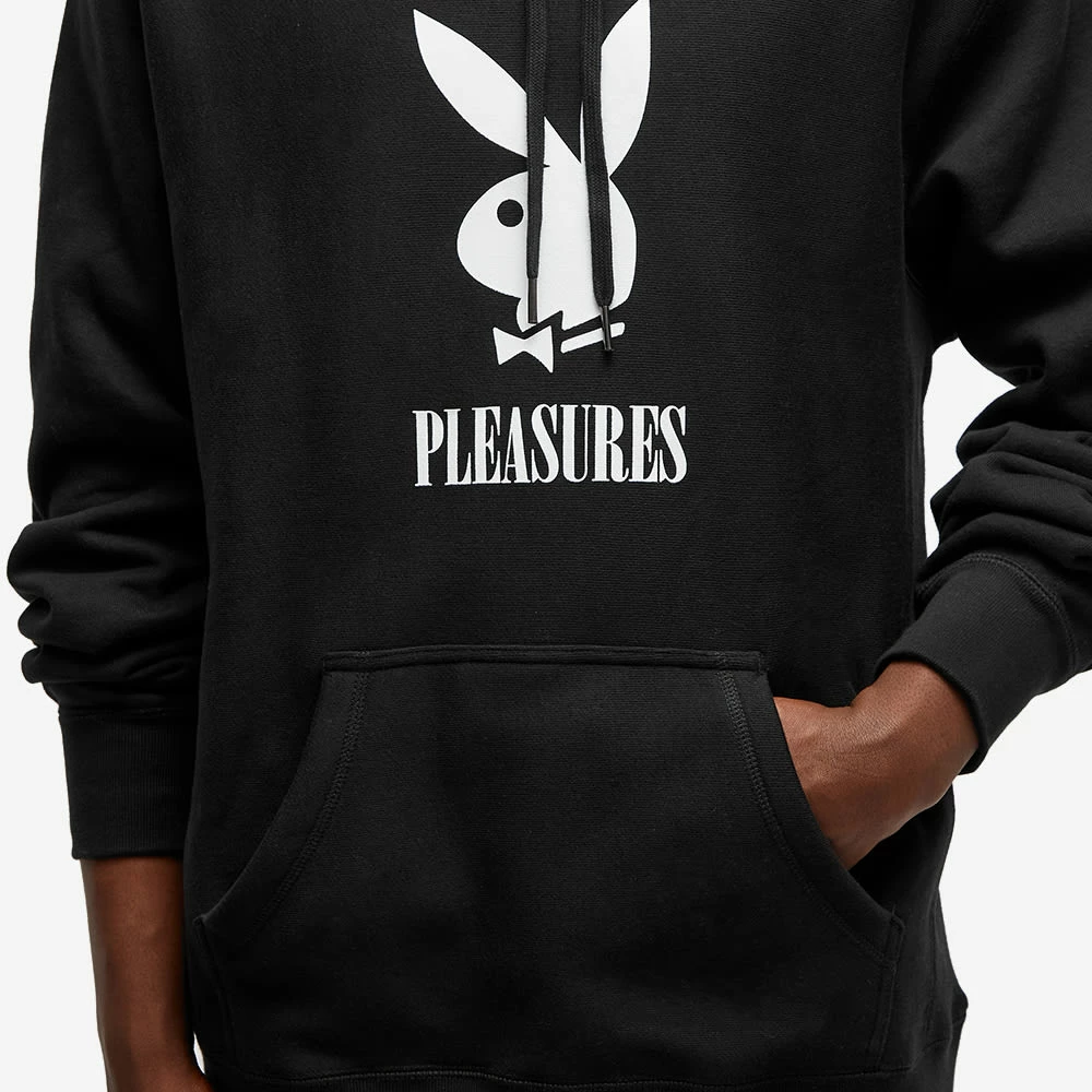 PLEASURES pays tribute to the iconic American publication, Playboy, with this black hoody. Crafted from soft and cosy loopback cotton, it features a drawstring hood and kangaroo pocket for classic detail – and is signed off with white printed Playboy branding to the chest.