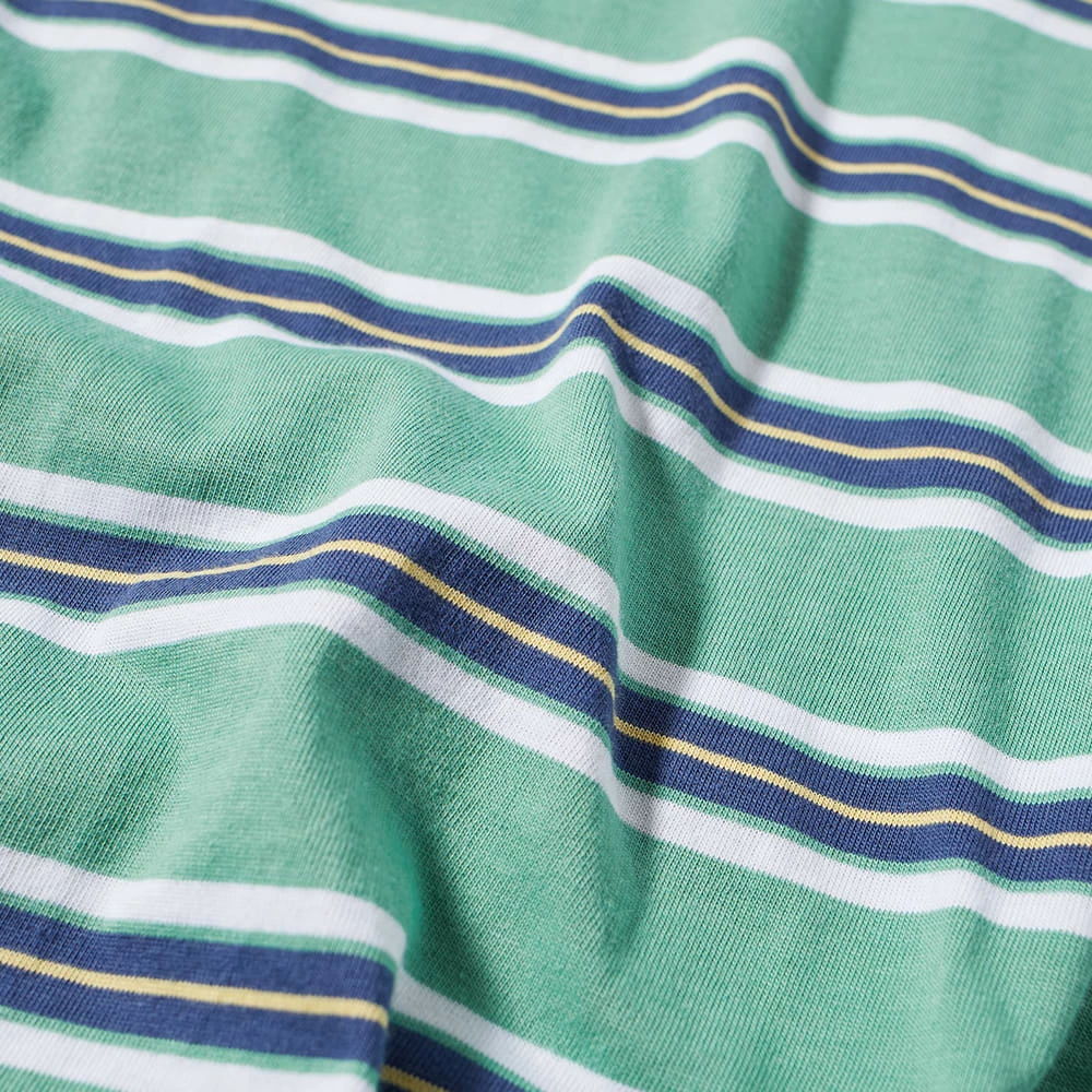 Classic, preppy casualwear is Polo Ralph Lauren’s forte. Authentic and timeless, it presents its version of the essential striped tee. The iconic polo pony is embroidered in the usual spot, embodying the brands strength, quality, and competitive spirit.