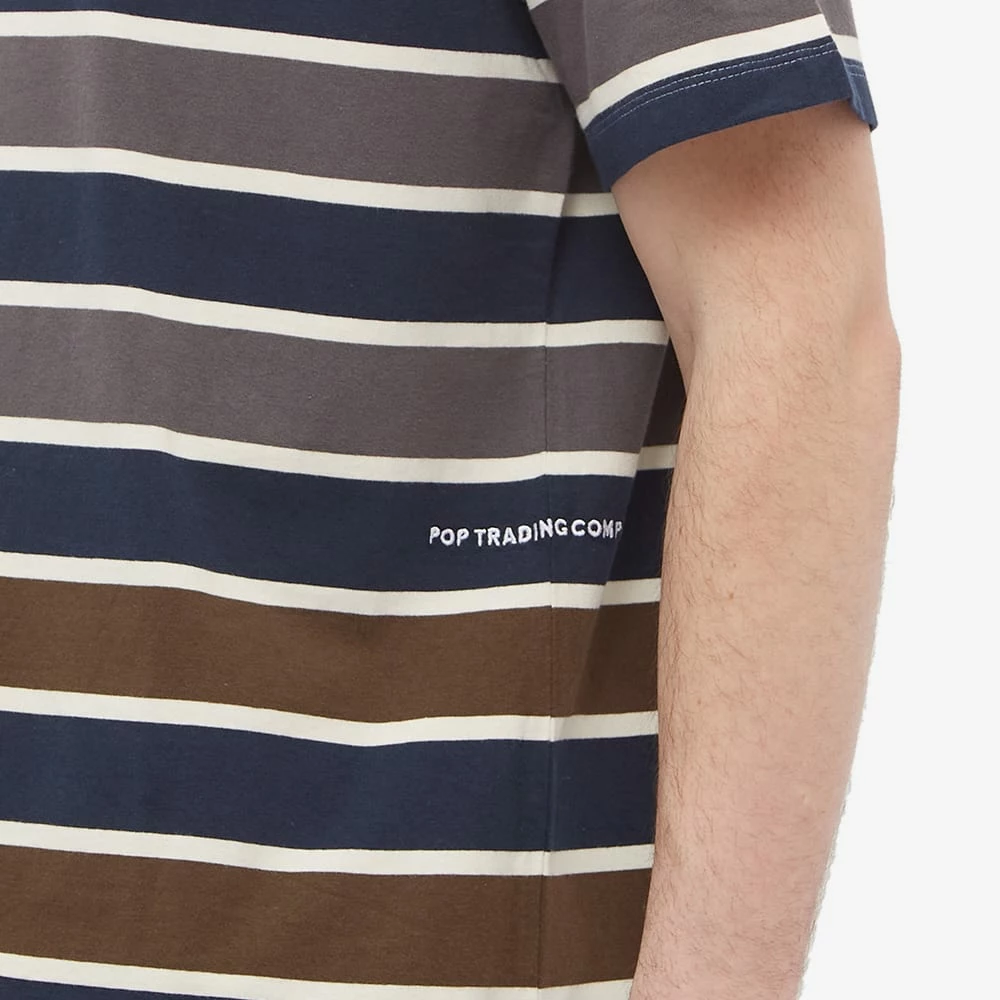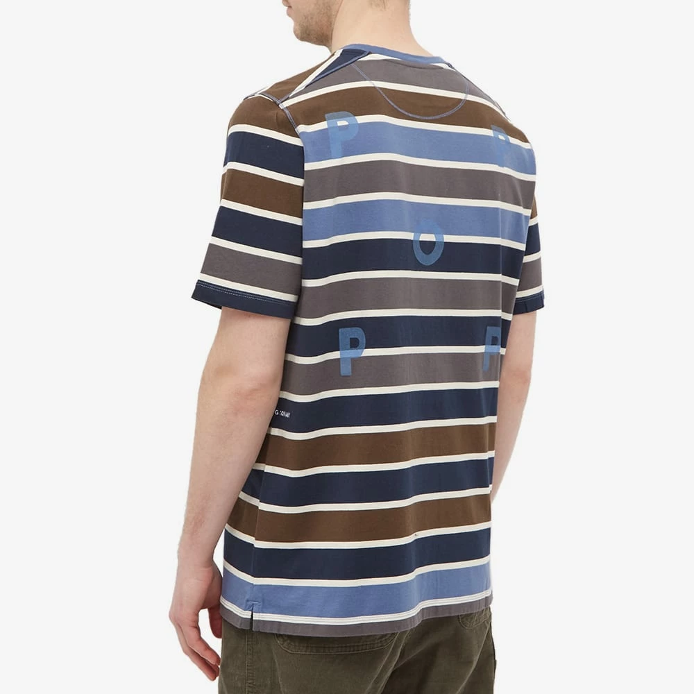 Pop Trading Company has a knack for designing laid-back, everyday pieces, like this tee. It’s crafted from pure cotton and covered in earthy-tone stripes, then branded twice, with embroidery at one side and a spaced-out logo at the back.