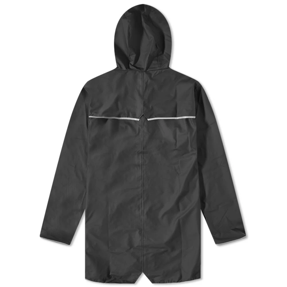 Take the day on, whatever the weather, with this sleek black long jacket from RAINS. Made from waterproof polyurethane fabric, it’s cut to a smooth silhouette that drapes around the body, complete with a fishtail hem and is reflective so you can be seen with ease on dark nights. Other features include a drawstring hood with cap brim and adjustable cuffs for optimum comfort and protection.