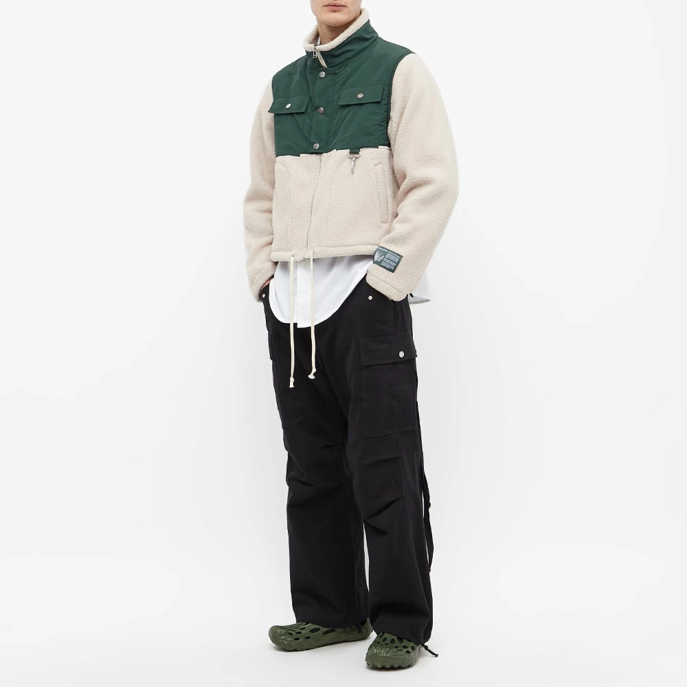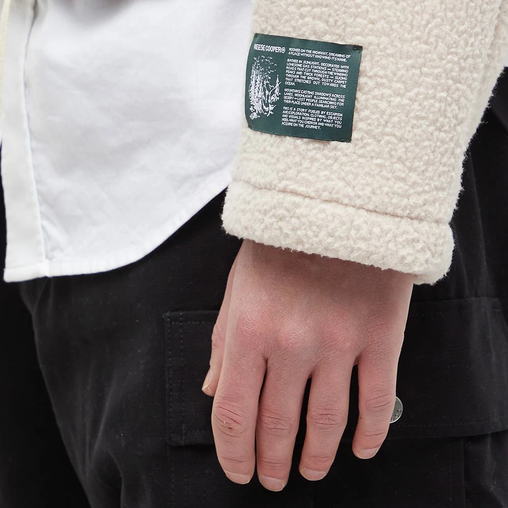 Reese Cooper takes cues from the great outdoors to create this cream-coloured sherpa fleece jacket from its latest collection. It’s crafted from super soft sherpa fleece and styled with a drawstring adjustable hem to help lock in the warmth. Updated this season with a contrasting green nylon vest overlay, it features two cargo pockets at the chest and is finished with a utilitarian carabiner clip.