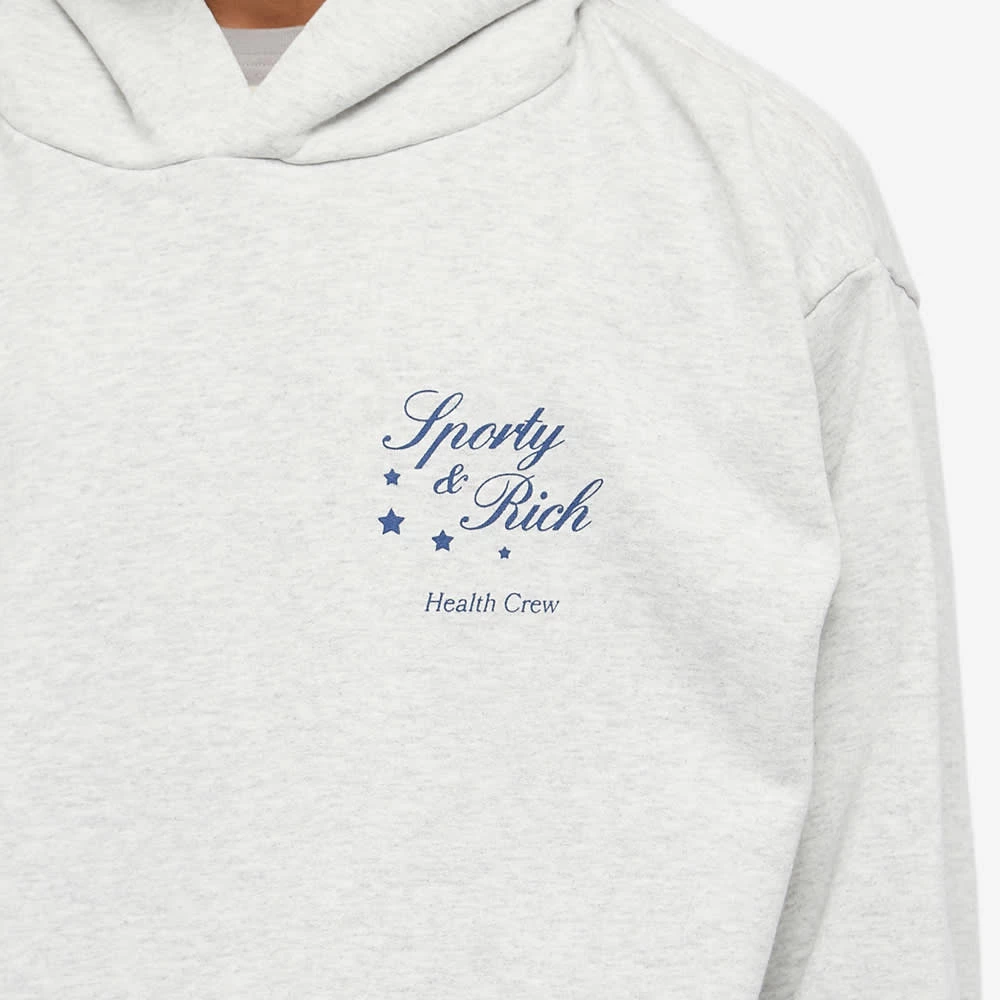 Join LA-based brand Sporty & Rich’s ‘health crew’ with this heather grey hoody. Constructed from super-soft cotton, it offers a comfy, slightly relaxed fit, then it’s fitted with all the cosy trimmings you’d expect. To finish, it’s signed off with a contrast navy blue graphic printed on the chest. Team yours with the brand’s range of sweat shorts and pants to complete the luxe, athleisure look.