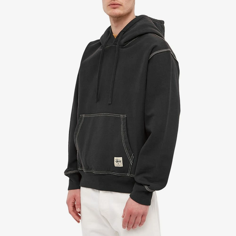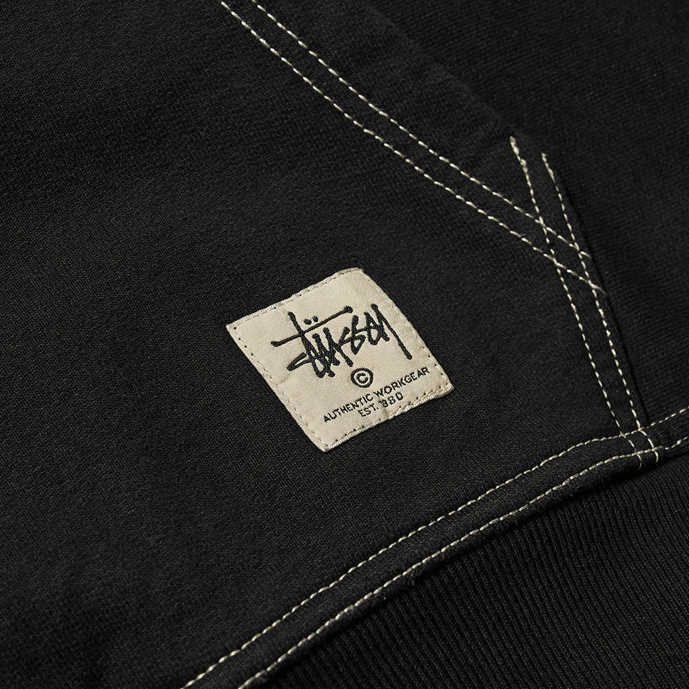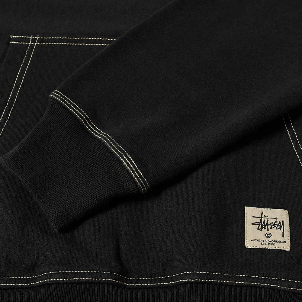 Streetwear label Stüssy redefines casualwear year-on-year and this hoody from the brand’s latest collection shows it. Arriving in black, it’s made from cosy fleeceback cotton jersey and features contrast topstitching around all the trims for a more subtle approach. To finish, the label’s Work Gear logo appears stamped at the pocket.