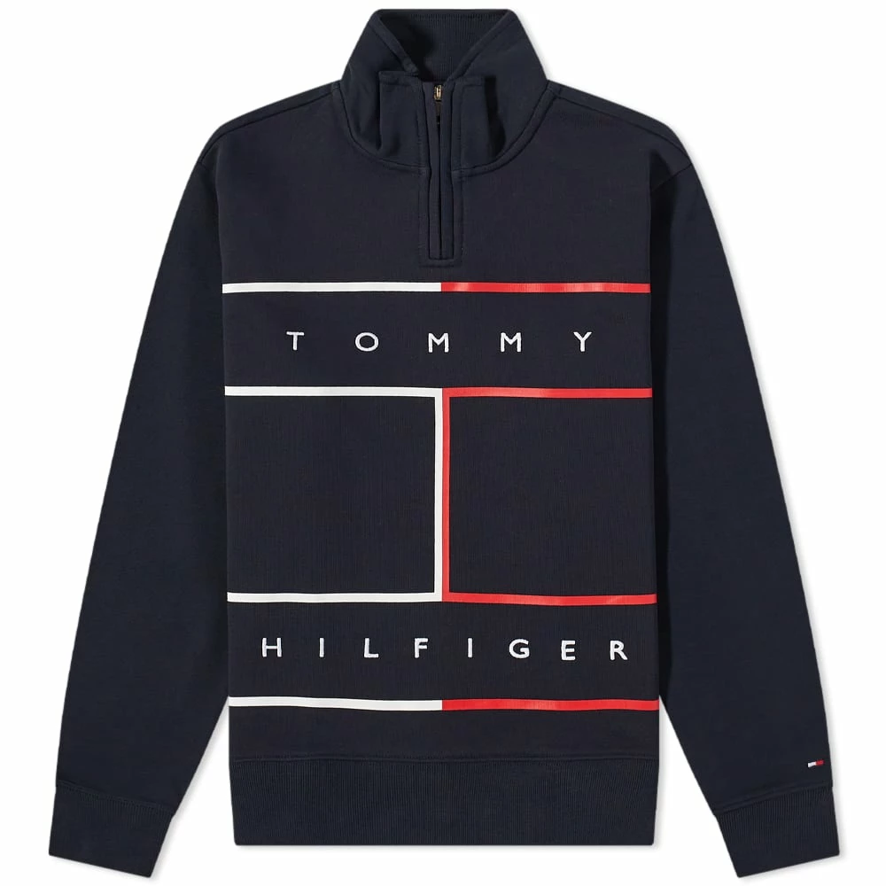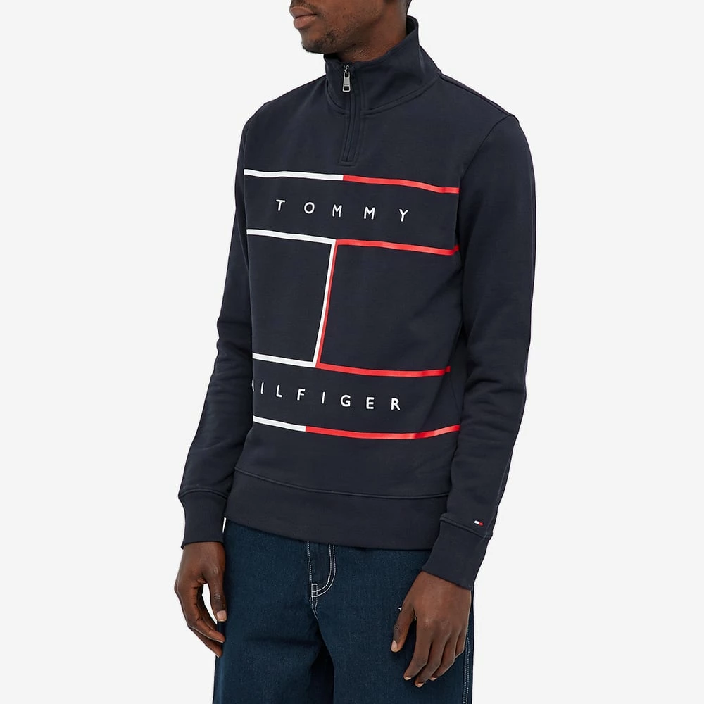 Tommy Jeans showcases its patriotism for America with this sweat by detailing it with a ‘red, white and blue’ flag on the chest. Made from pure cotton, it has a warming funnel neck and secures with a half-way zip closure.